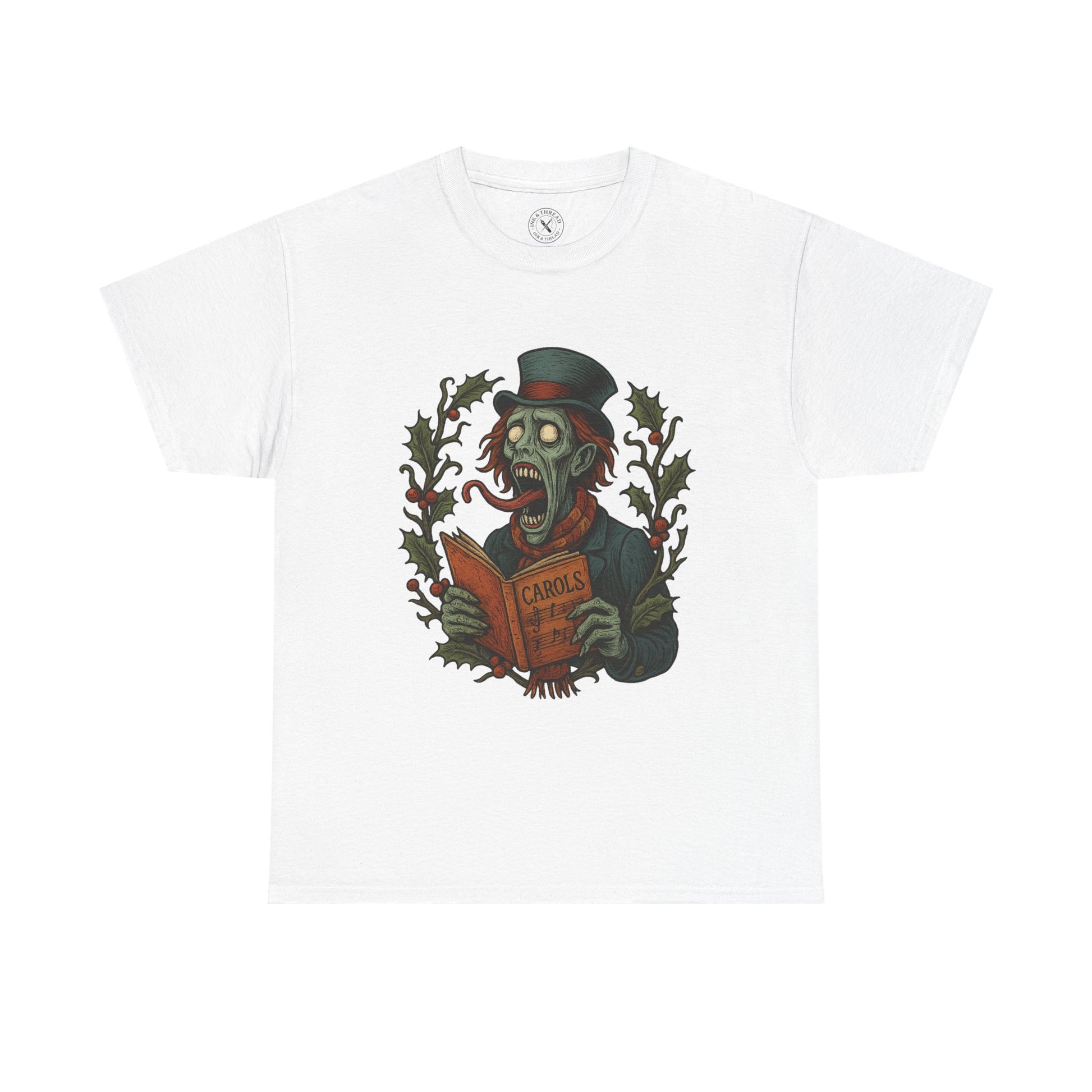 The Caroler Creep twists the charm of Victorian street singers into a nightmare chorus leader. With hollow glowing eyes, a gaping shriek, and a tattered scarf wrapped around its gaunt neck, this undead vocalist clutches a worn book of cursed carols as holly branches coil around it. Illustrated with bold ink shading and rich festive colours—deep reds, greens, and icy blues—this creature delivers a chilling rendition of Christmas spirit.
