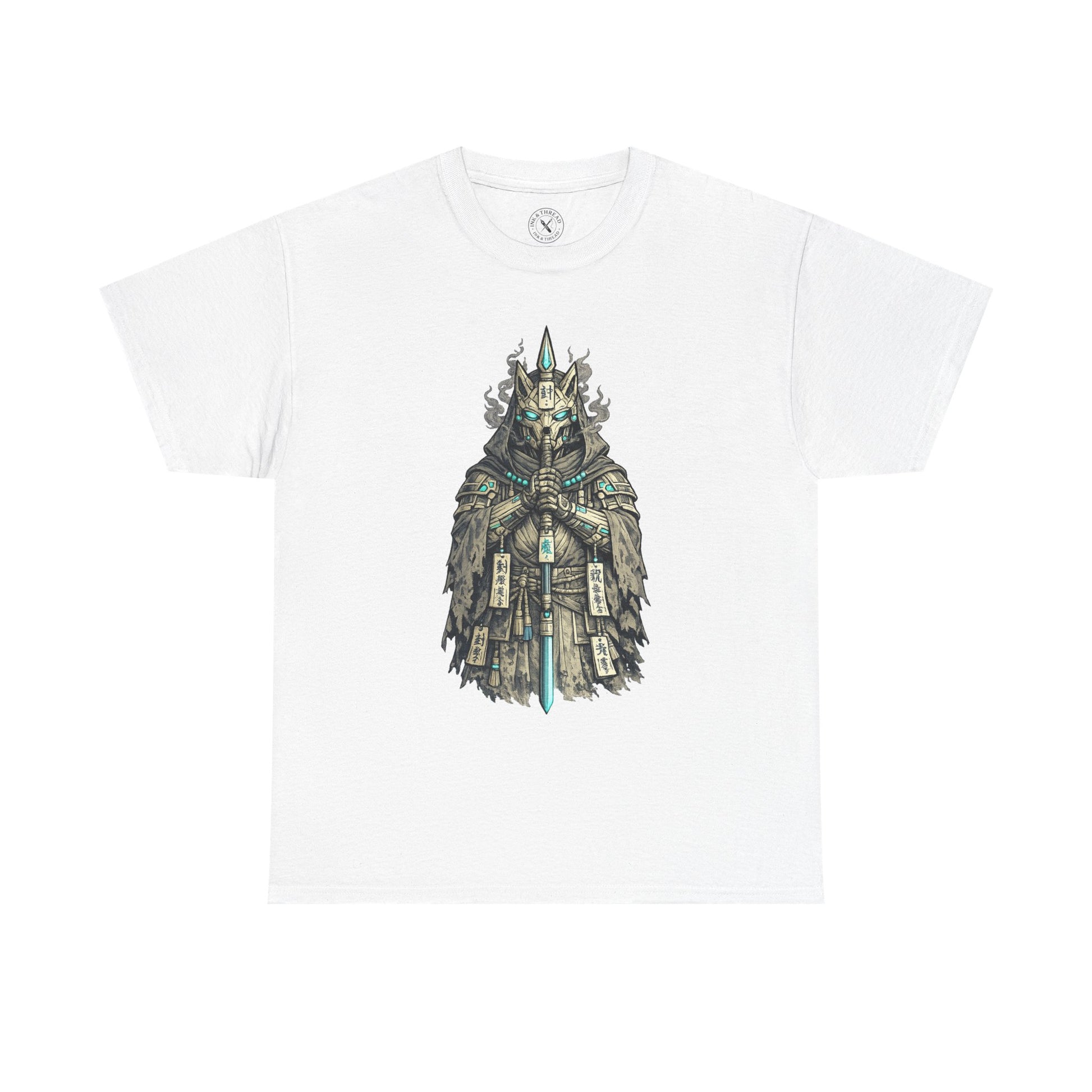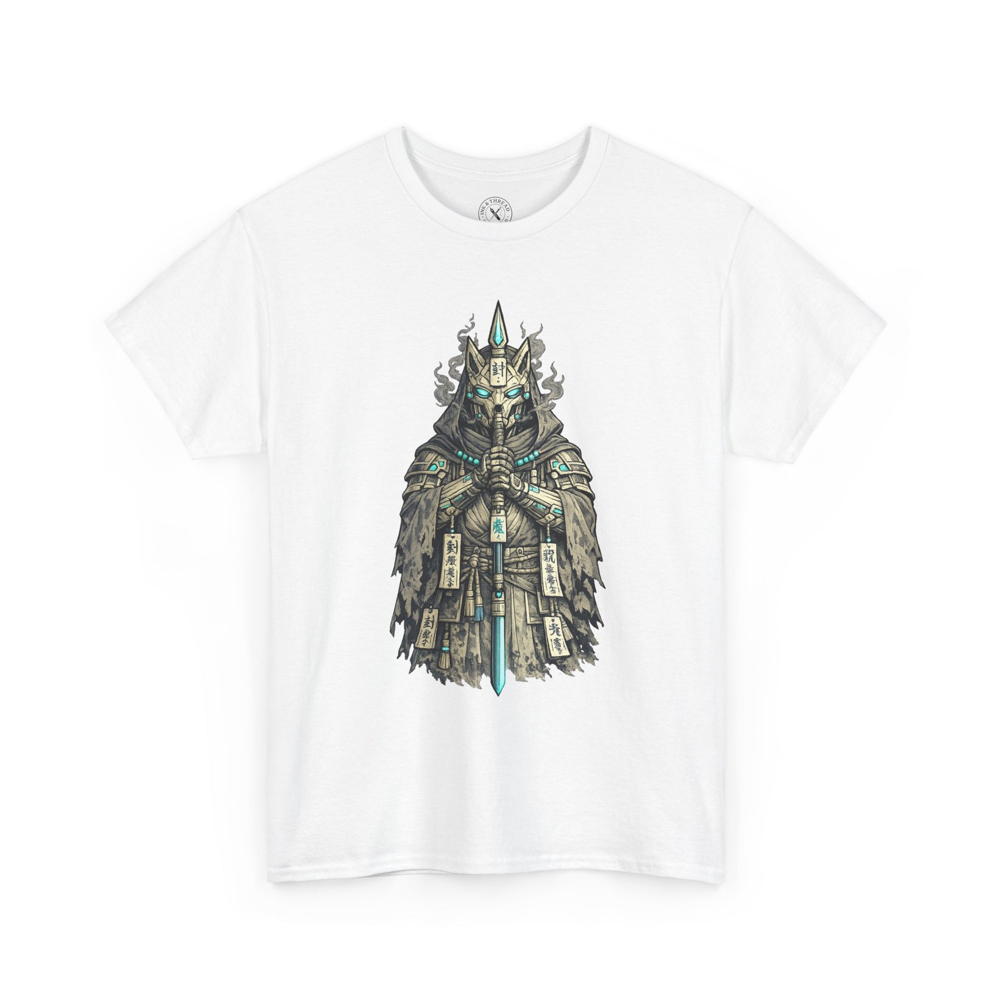 Cyber Exorcist depicts a ritual guardian from a future where belief and circuitry coexist. Clad in layered robes and talisman tags, the figure stands motionless with a ceremonial blade held in prayer, a symbol of purification rather than violence.