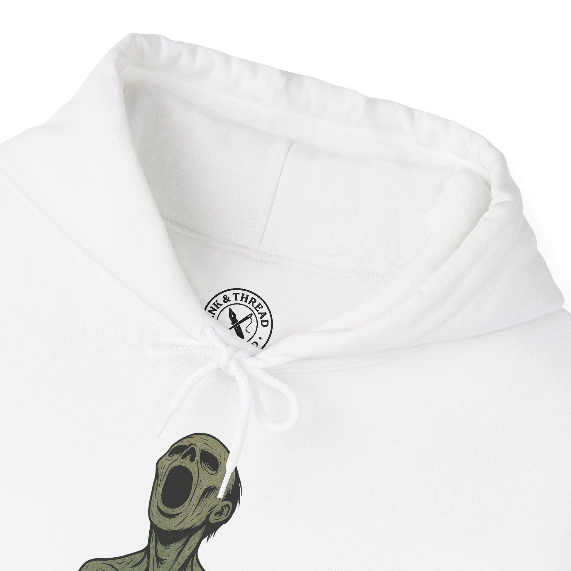 Printed on a premium hoodie, the artwork keeps its striking contrast and emotional impact, standing out as one of the most dramatic pieces in the Zombie Collection.