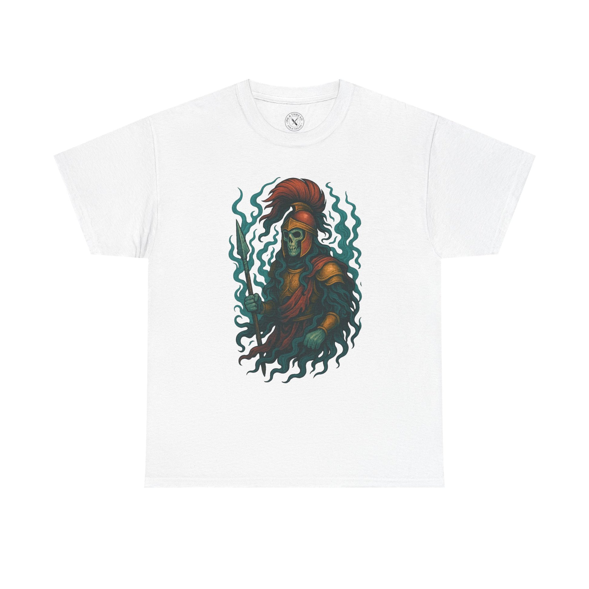 This design captures divine terror with grace — a haunting warrior cloaked in red and shadow, rendered in vibrant pastels of crimson, bronze, and spectral blue. Smooth gradients and minimal etching preserve the ethereal flow of his form, blending myth, reverence, and menace into one striking vision.