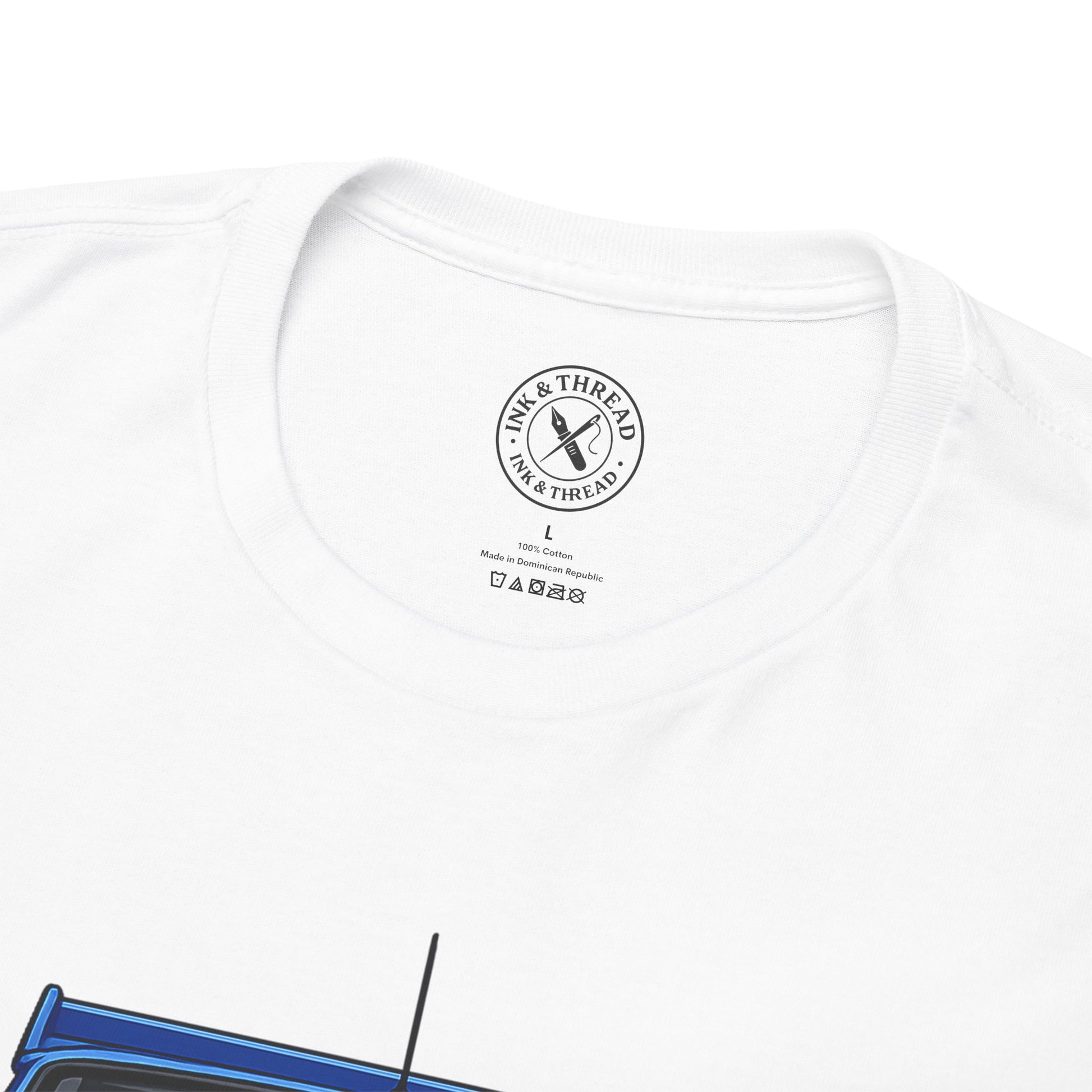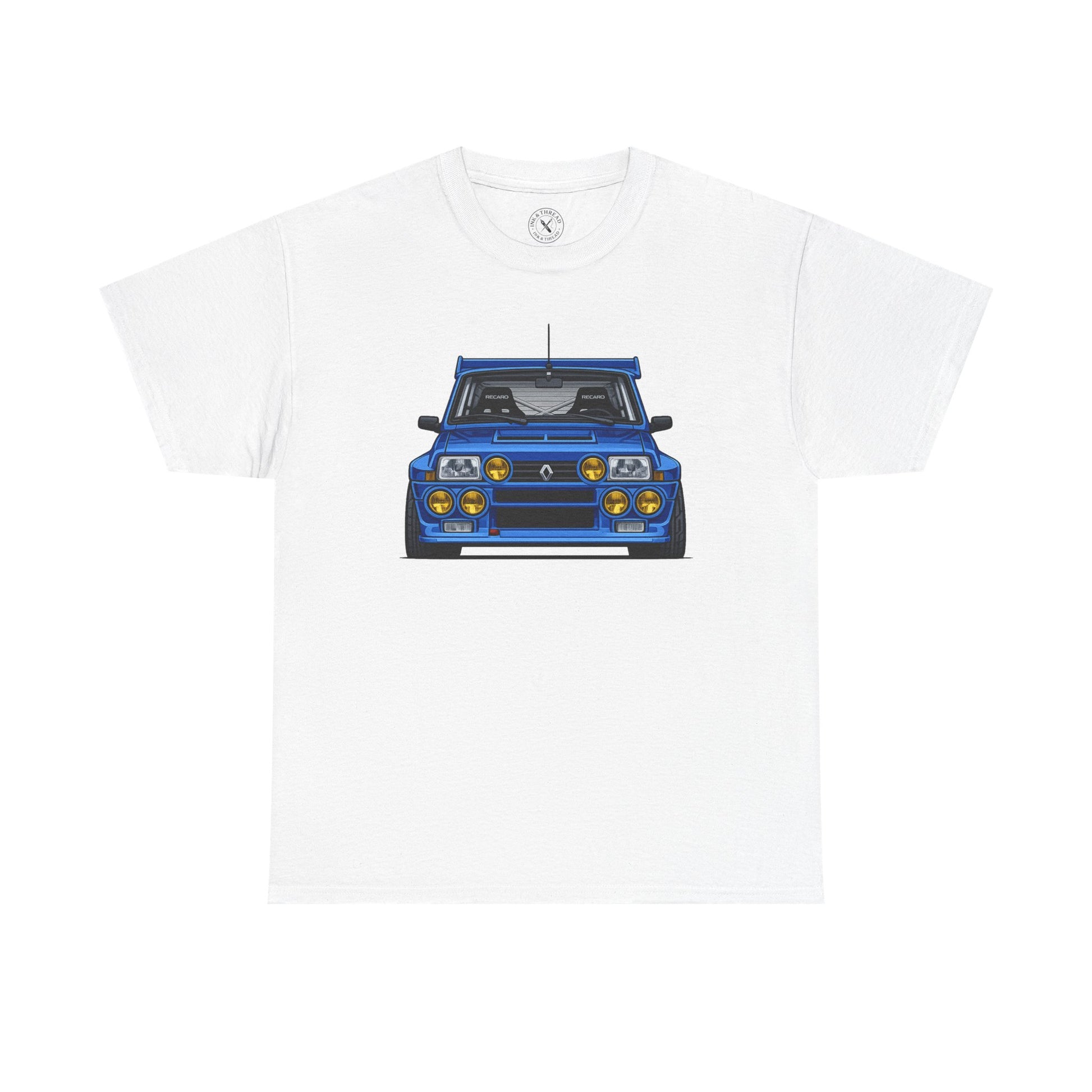 This Renault 5 Maxi Turbo T-shirt captures the aggressive front stance of the Group B monster that rewrote rally history. Wide arches, quad yellow rally lamps, and pure 1980s motorsport attitude — illustrated in sharp detail and printed clean for everyday wear.
