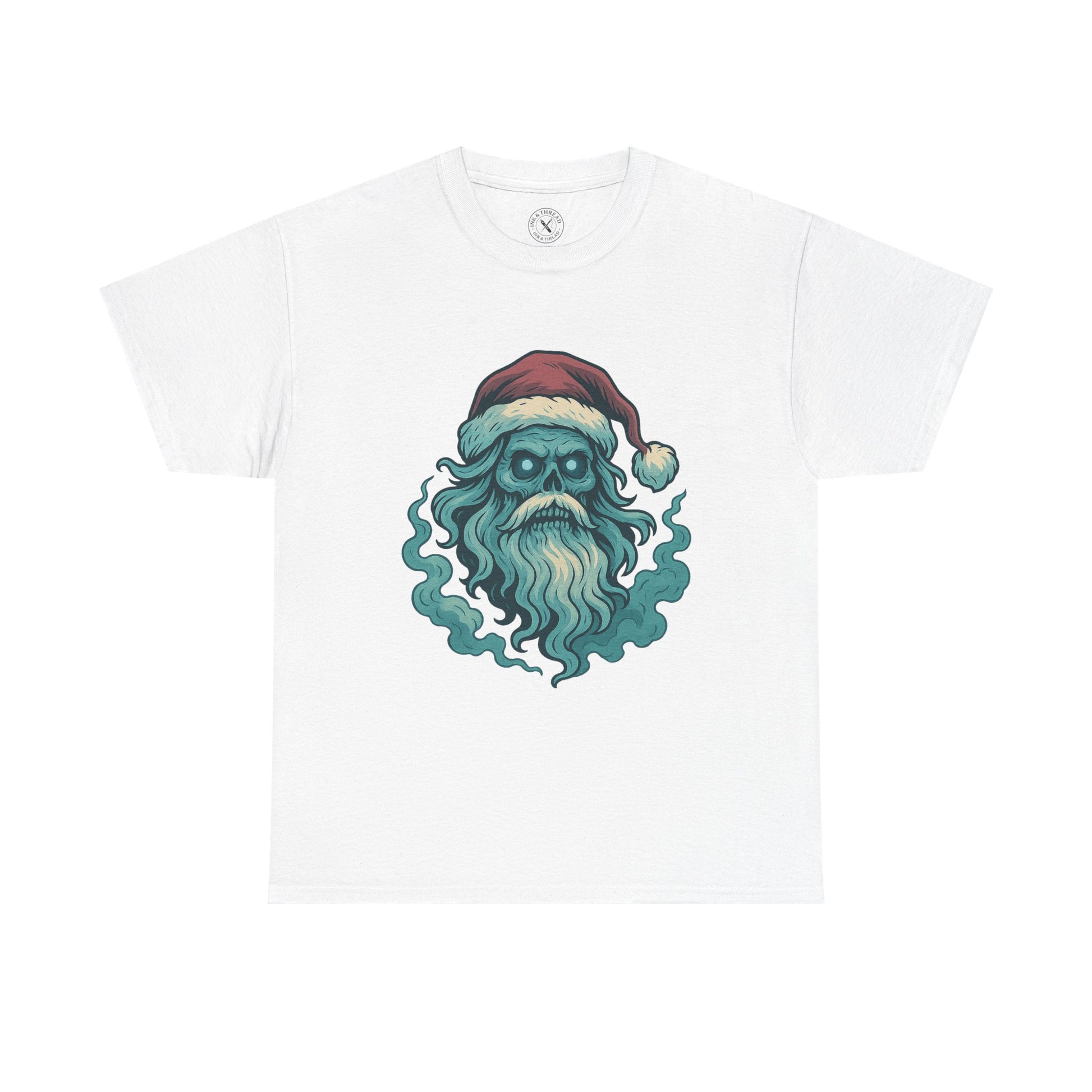 Saint Nick’s Revenant reimagines Santa as a spectral, hollow-eyed apparition drifting through winter mist. His swirling ghostly beard, sunken features, and icy glow bring a haunting twist to the holiday season. Rendered in bold ink lines with high-contrast shading and vibrant cool-tone pastels, this design captures the perfect blend of festive and fearsome.