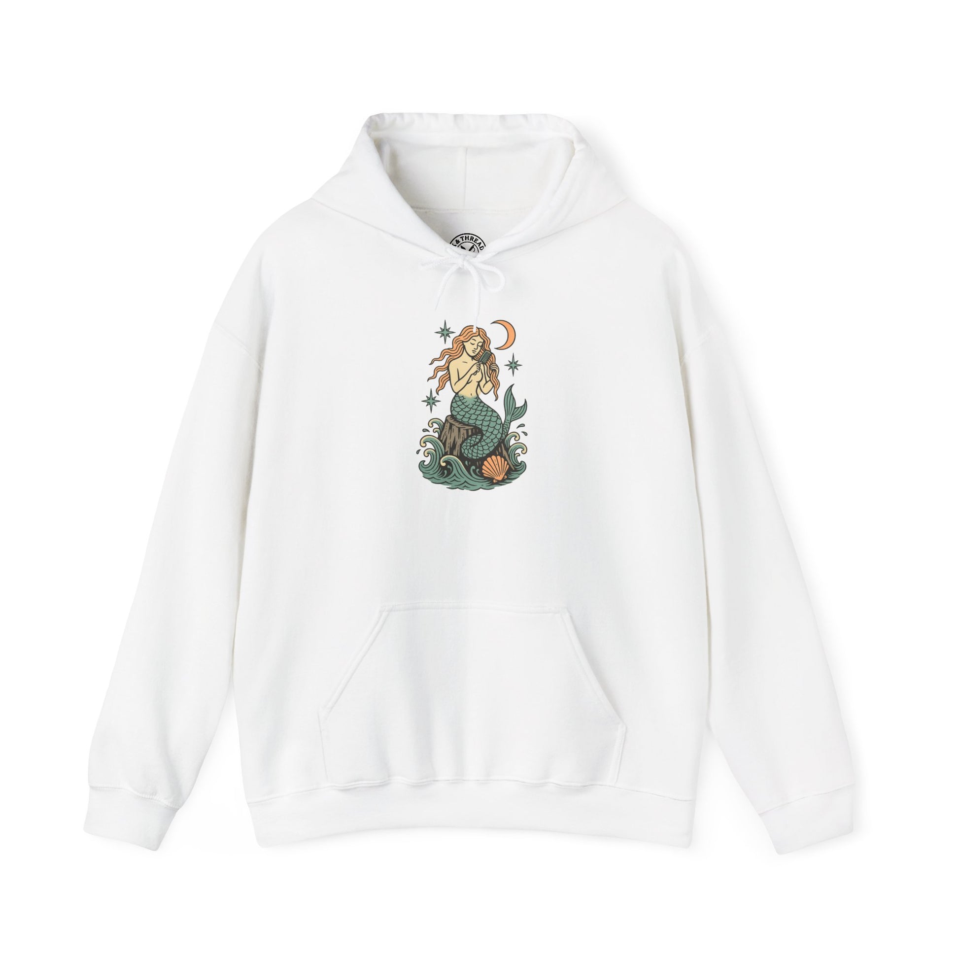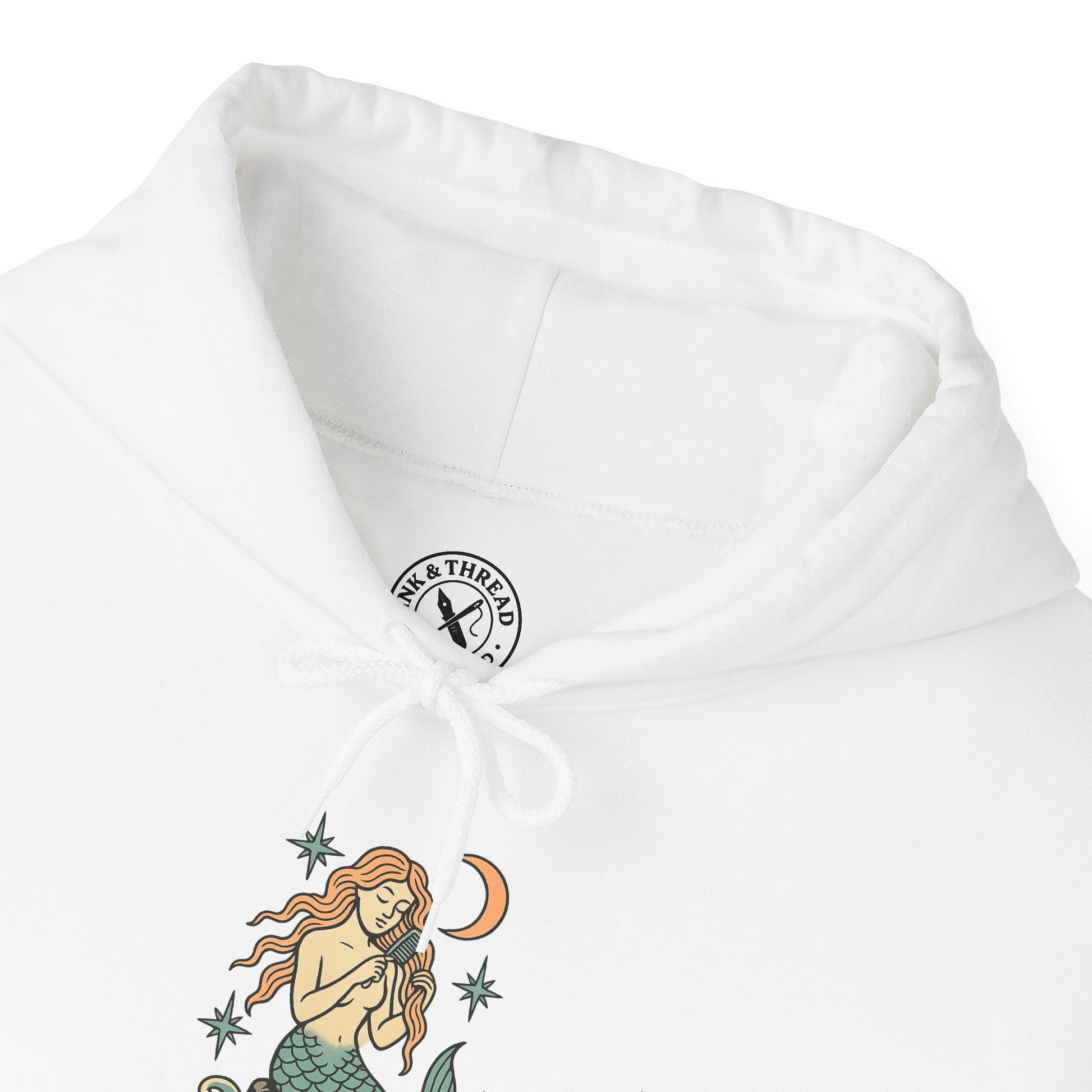 Rendered in soft pastel inks and bold tattoo outlines, this hoodie captures myth, mystery, and maritime allure. Crafted from heavyweight cotton-blend fleece, it delivers warmth and comfort, making it the perfect piece for storm watchers, ocean dreamers, and those who hear the siren’s song.