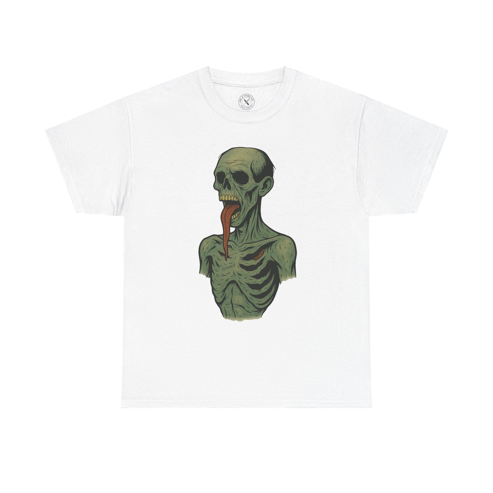 Illustrated in the signature Ink & Thread pastel-ink style, Slacktongue combines bold black outlines, muted corpse greens, and subtle rot tones to create a crisp, print-ready silhouette. The exaggerated tongue becomes the defining feature, giving this undead design a twisted personality that stands out in the Zombie Collection.