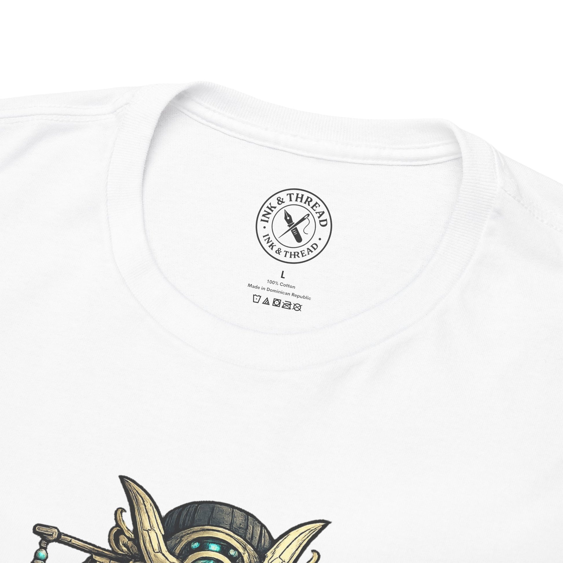 Rendered in Ink & Thread’s signature tattoo-inspired style, the illustration balances traditional Japanese elegance with futuristic cybernetic detail. Soft pastel tones contrast against mechanical form, creating a striking fusion of beauty, discipline, and threat.