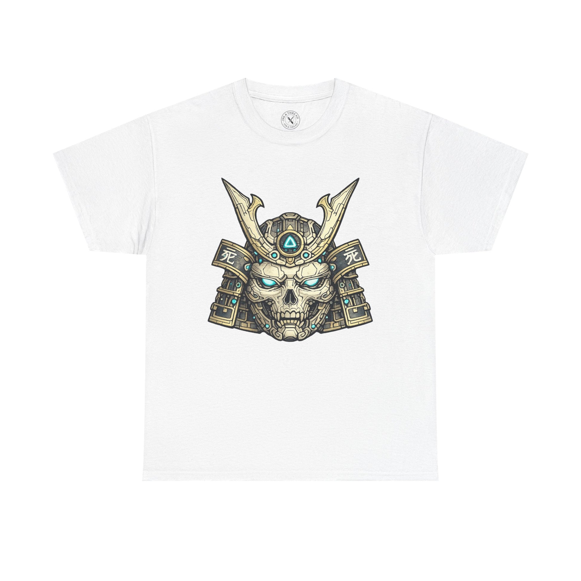 Synthetic Samurai Skull fuses the enduring symbol of the skull with the disciplined form of the samurai kabuto. Stripped of ornament and excess, the design presents a cybernetic relic, a warrior’s legacy preserved in steel, circuitry, and resolve.