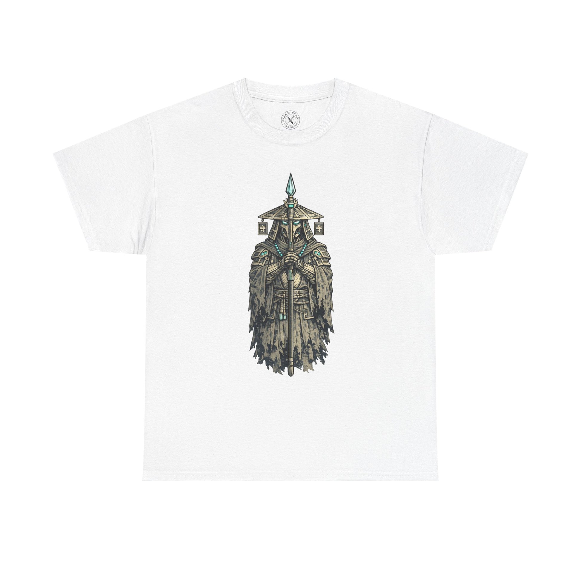 Synthetic Shrine Guard depicts a ceremonial protector reborn in circuitry and steel. Standing motionless with spear grounded, this figure embodies duty rather than dominance, a guardian designed to endure long after belief and flesh have faded.