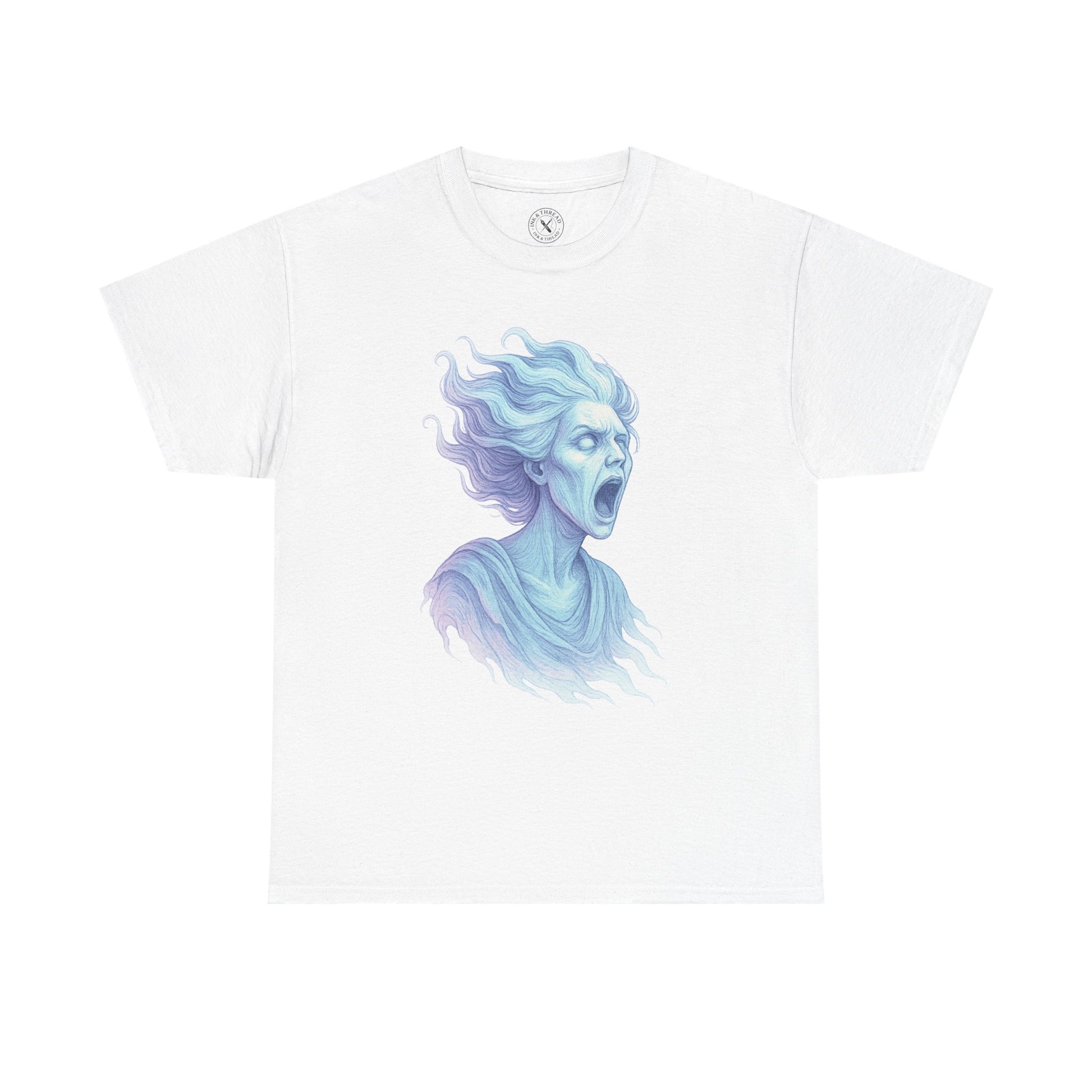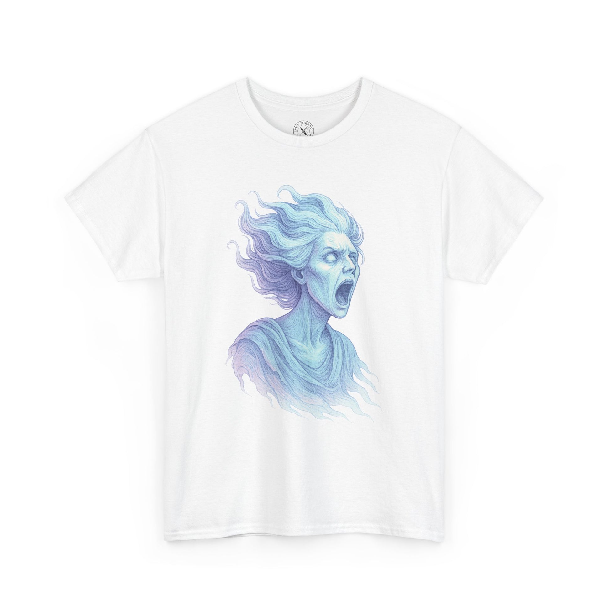 Haunting and ethereal, The Banshee captures the spirit of ancient legend — a ghostly woman mid-scream, her hair and robes swirling in spectral motion. Rendered in icy pastel hues of blue and violet, this detailed illustration radiates an otherworldly glow that chills and captivates in equal measure. Designed with a transparent background and no cropping, it’s perfect for Halloween collections steeped in mythology and mystery.