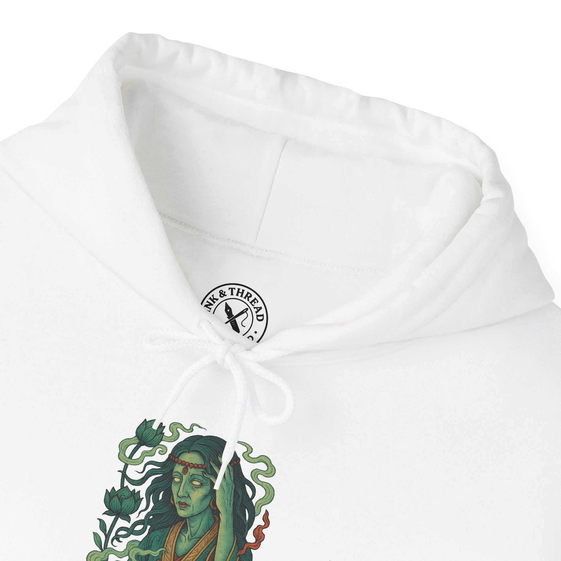 Rendered in intricate Japanese tattoo-style linework and spectral pastel tones, this hoodie embodies the tension between blindness and vision, silence and revelation. It’s more than apparel — it’s an omen, worn close to the heart.