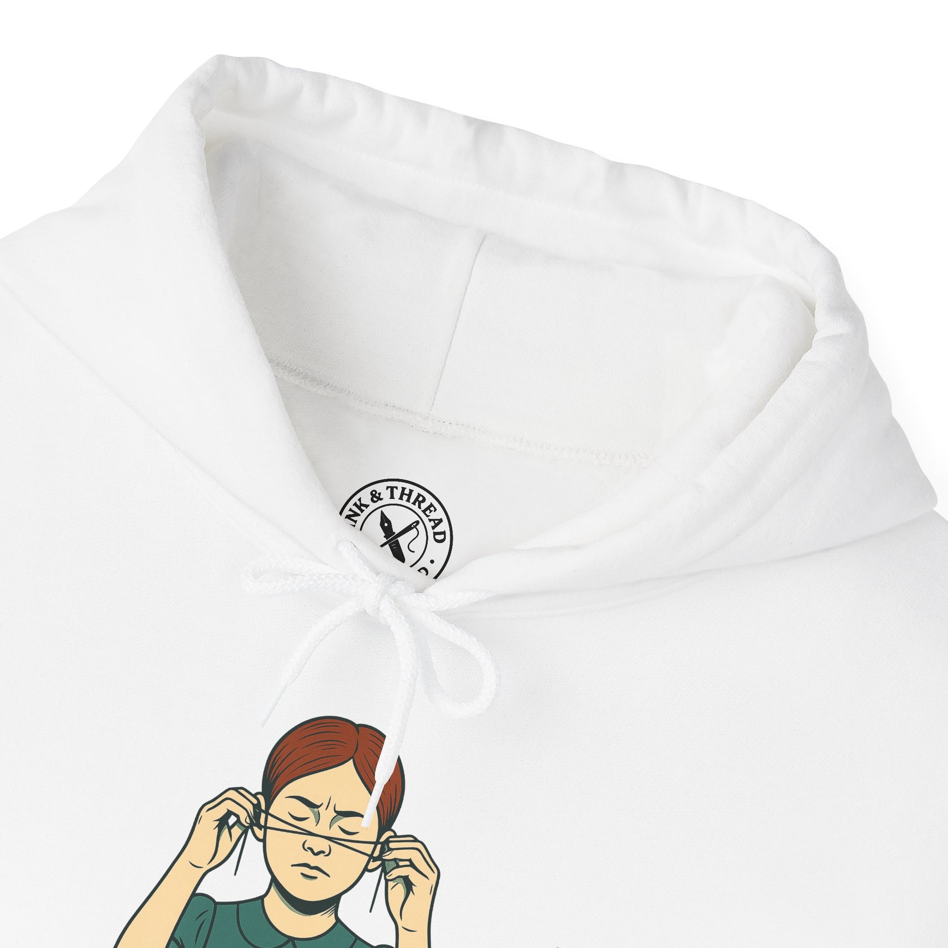 Silence has weight — and The Listener II Hoodie captures that tension in a haunting, surreal form. The artwork features a solemn figure pulling thread tight around their ears, as if holding back something unspeakable. Their closed eyes, furrowed brow, and still, unmoving posture create an atmosphere of quiet dread, giving this hoodie a uniquely eerie presence within The Hollow Ones universe.