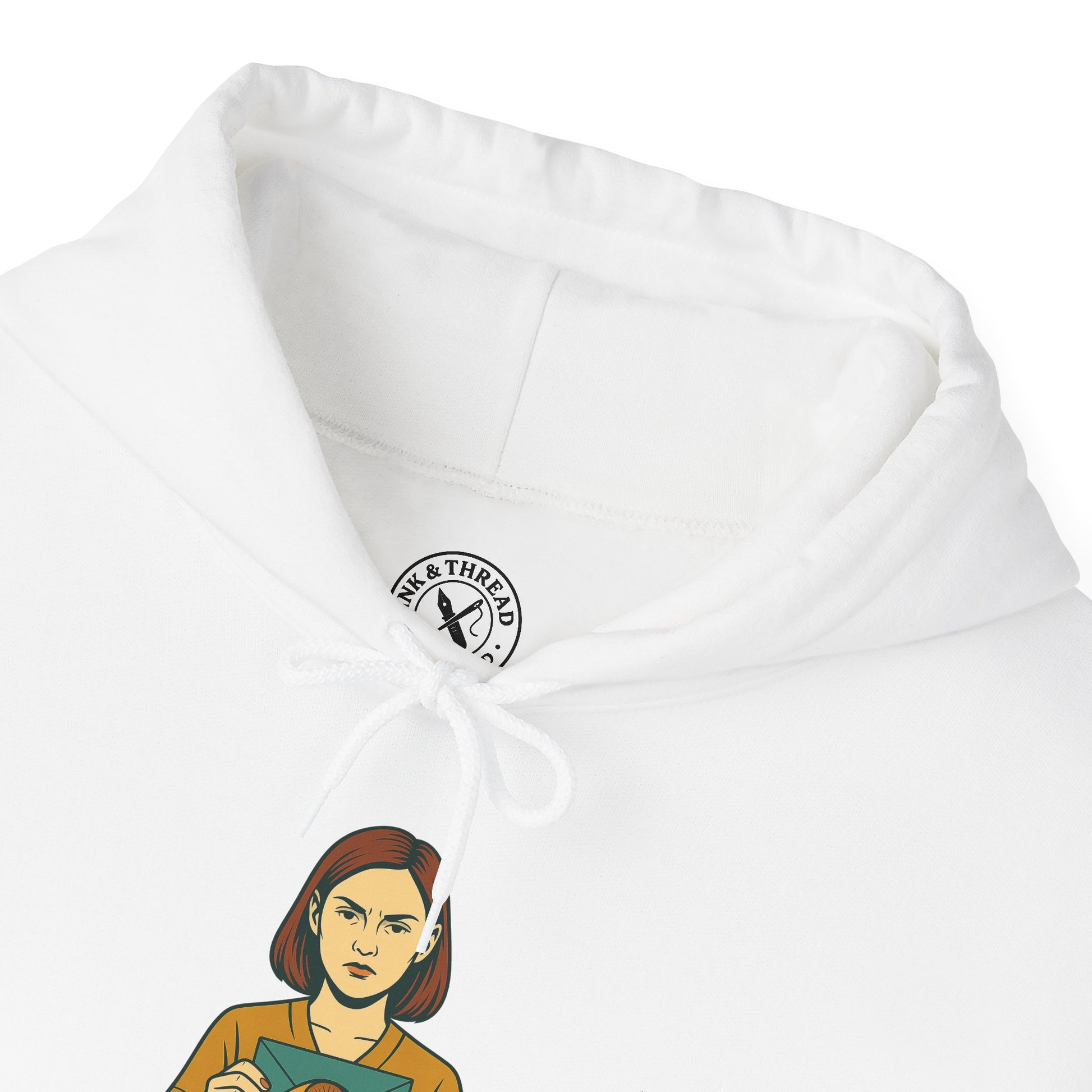 The Message Hoodie transforms quiet tension into wearable symbolism — a surreal child holding a folded paper, lips sealed by thread. It’s a study in secrecy, control, and the space between what’s said and what’s hidden. Their still gaze feels fragile yet defiant, echoing through muted tones and clean, deliberate lines.