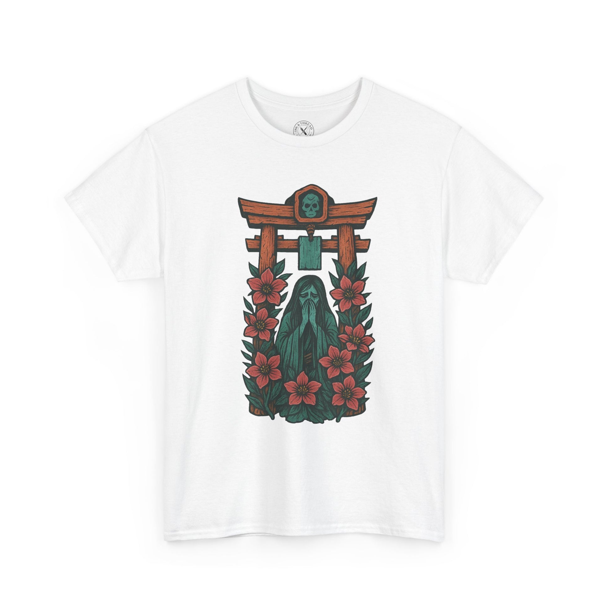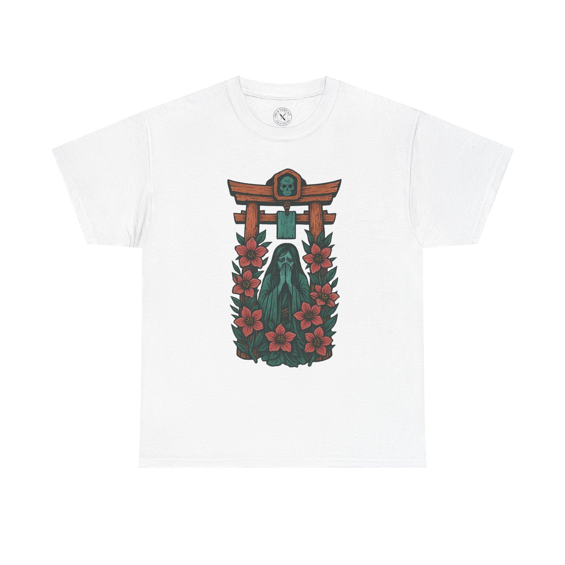 Rendered in elegant pastel tones and intricate Japanese tattoo linework, this piece symbolizes death, transition, and the thin space between worlds.