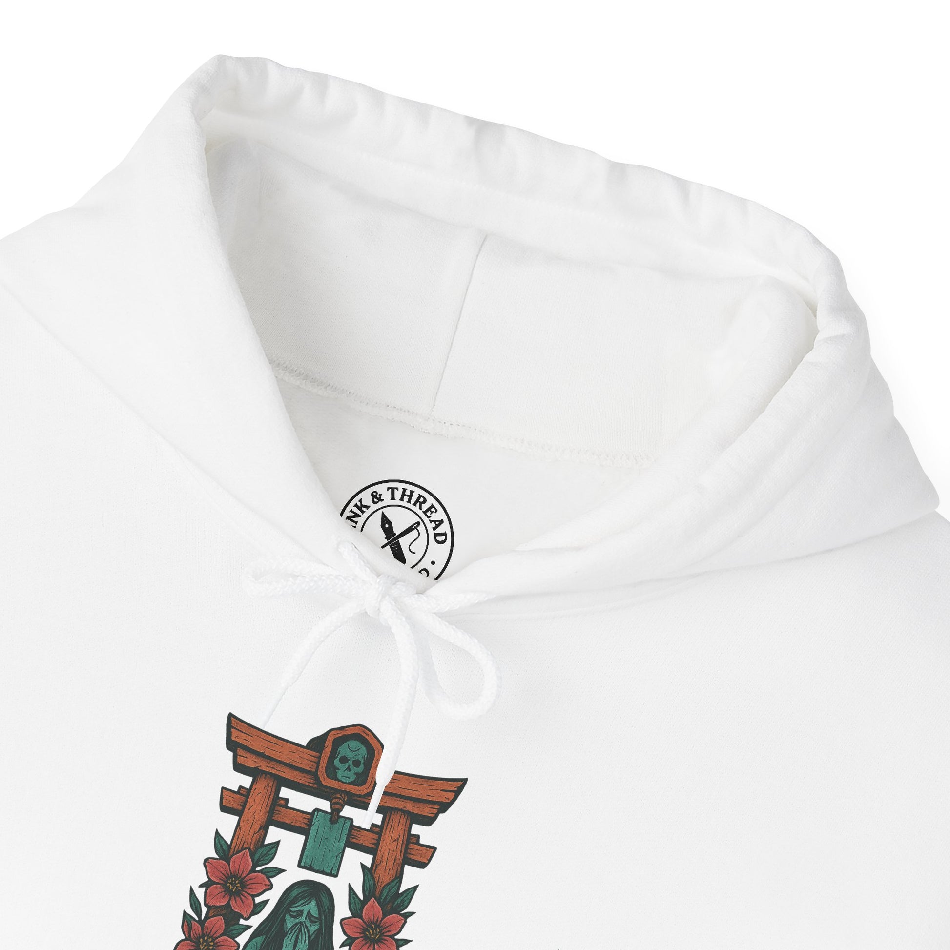 This hoodie captures the moment between worlds: peace and passage rendered in soft pastel tones and traditional Japanese tattoo-style linework. Each fold of the fabric mirrors the flowing calm of ritual and remembrance.