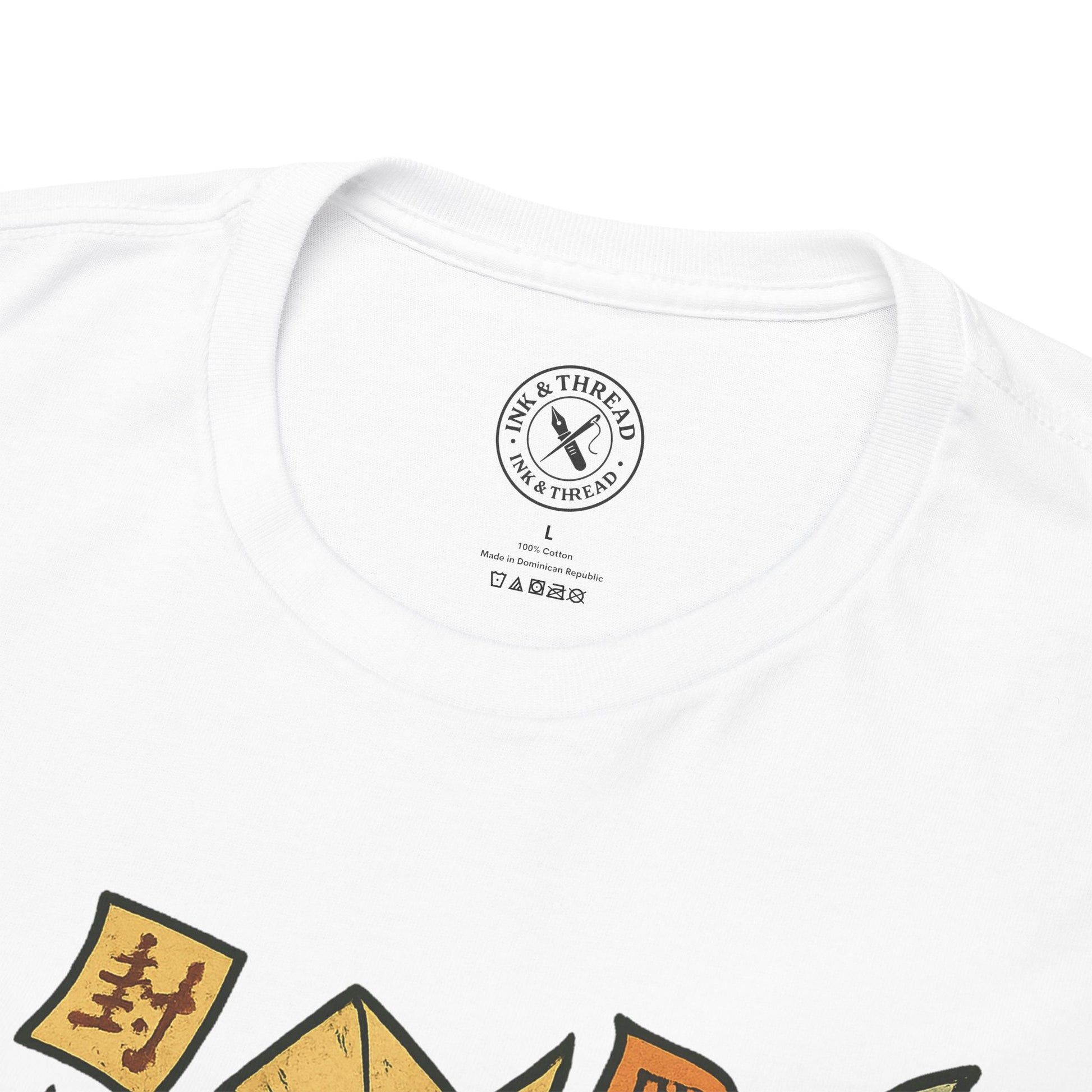 Surrounded by swirling ofuda and rendered in warm parchment tones with soft teal and ember red pastels, this design channels elegance, mystery, and the quiet power of belief.