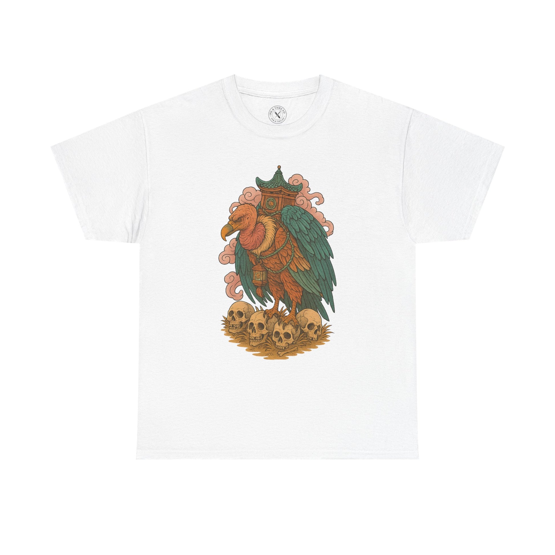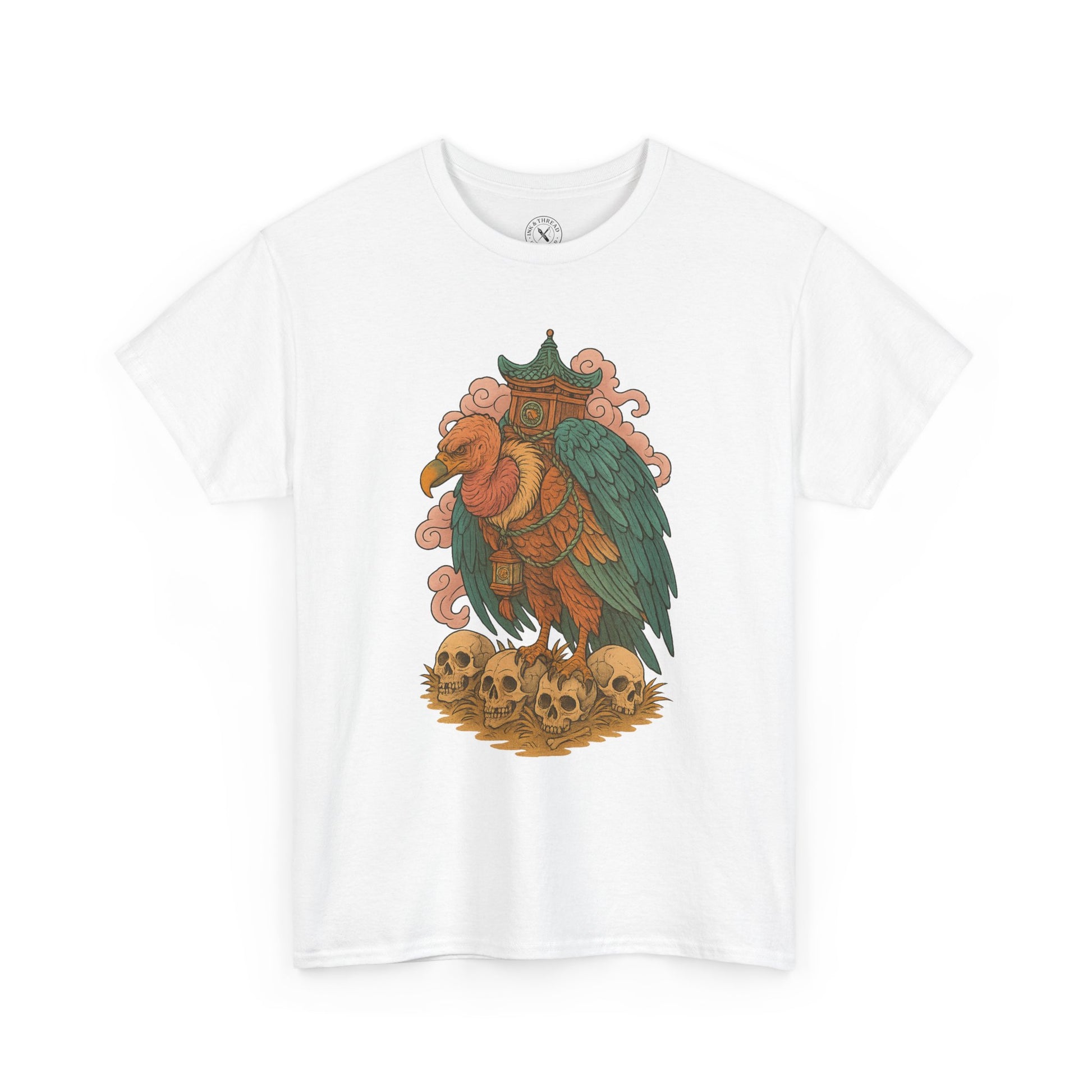 The Sky Burial captures a sacred moment of transition — a monk’s lifeless form levitates gently, cradled by swirling sutras, silent ravens, and rising incense smoke.